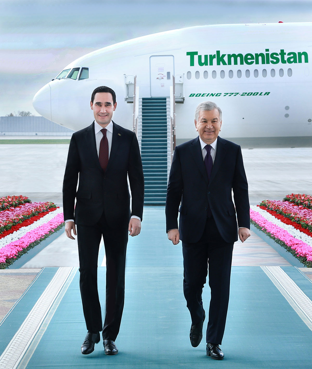 ...Birnäçe wagtdan hormatly Prezidentimiziň uçary iki ýurduň Döwlet baýdaklary bilen bezelen Daşkent şäheriniň Halkara howa menziline gelip gondy. Haly düşelen ýodajygyň iki tarapynda Hormat garawulynyň esgerleri nyzama düzülipdir. Bu ýerde döwlet Baştutanymyz Serdar Berdimuhamedowy Özbegistan Respublikasynyň Prezidenti Şawkat Mirziýoýew mähirli garşylady.