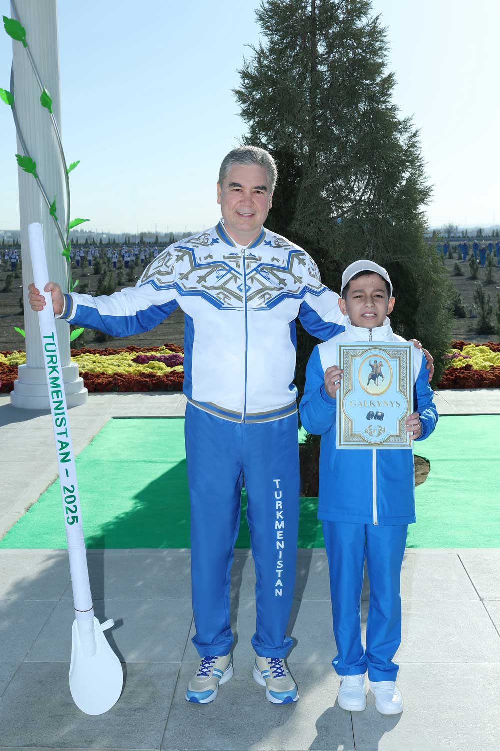 Soňra Gahryman Arkadagymyz täze şäheriň çäginde ählihalk bag ekmek dabarasynyň güýzki möwsümine badalga bermek üçin niýetlenen ýere geldi. Taryhy ähmiýetli waka gatnaşýan oglanjyk ajaýyp goşgy setirleriniň üsti bilen türkmen halkynyň Milli Liderinden ählihalk bag ekmek dabarasyna badalga bermegini haýyş etdi. Şeýle hem ol hormatly Arkadagymyzdan özi bilen ýadygärlik surata düşmegini haýyş etdi. Türkmenistanyň Halk Maslahatynyň Başlygy oglanjygyň haýyşyny kanagatlandyryp, onuň bilen ýadygärlik surata düşdi.