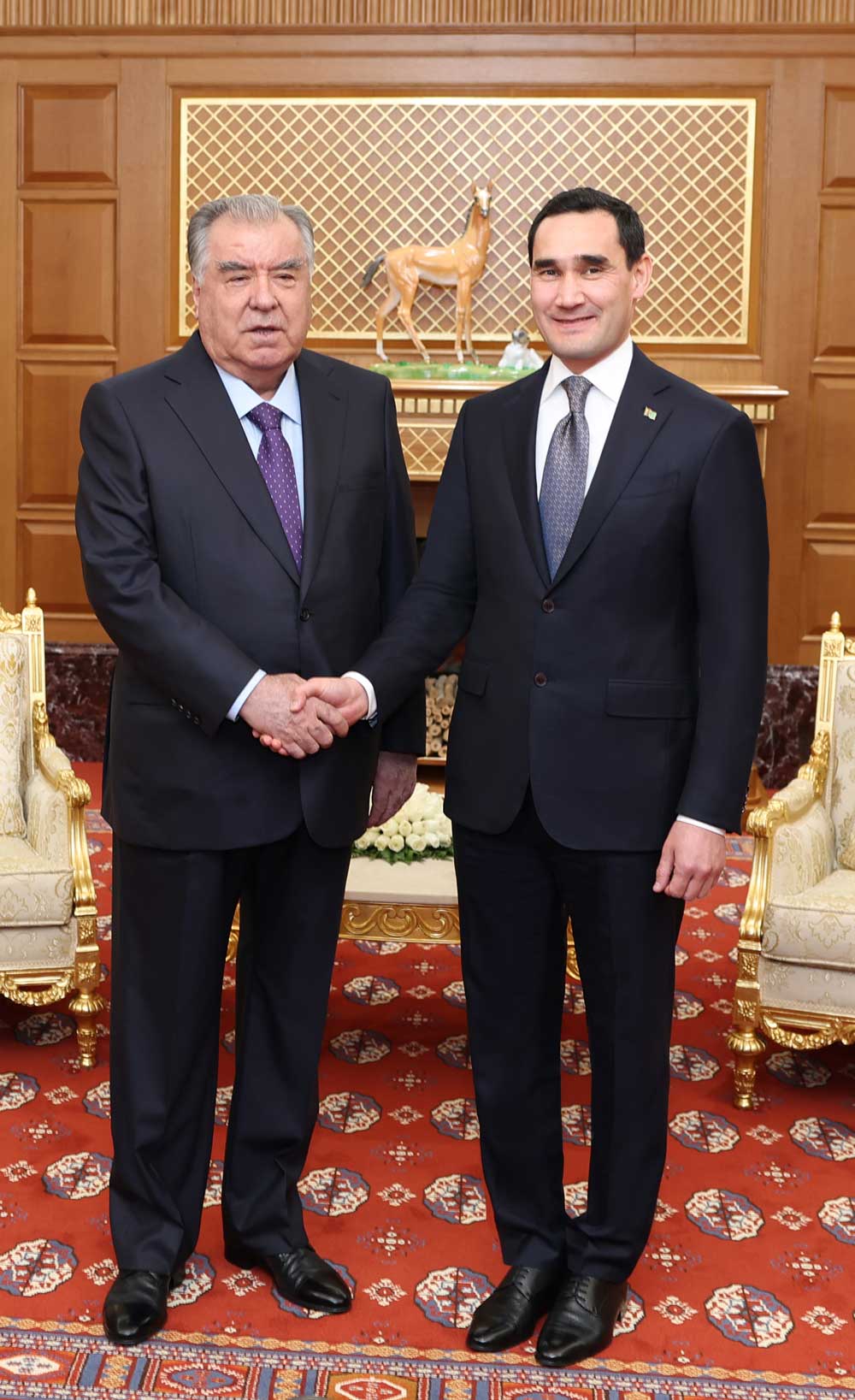 Şu gün hormatly Prezidentimiz Serdar Berdimuhamedow Türkmenistanyň hemişelik Bitaraplygynyň 30 ýyllygy mynasybetli halkara maslahata gatnaşmak üçin ýurdumyza gelen Täjigistan Respublikasynyň Prezidenti Emomali Rahmon bilen duşuşdy.